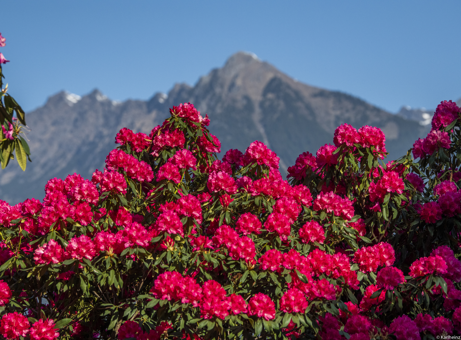 In den Waldgärten bildet diese Rhododendronart dunkelrote Blüten, die sich im April öffnen und mehrere Wochen lang blühen.