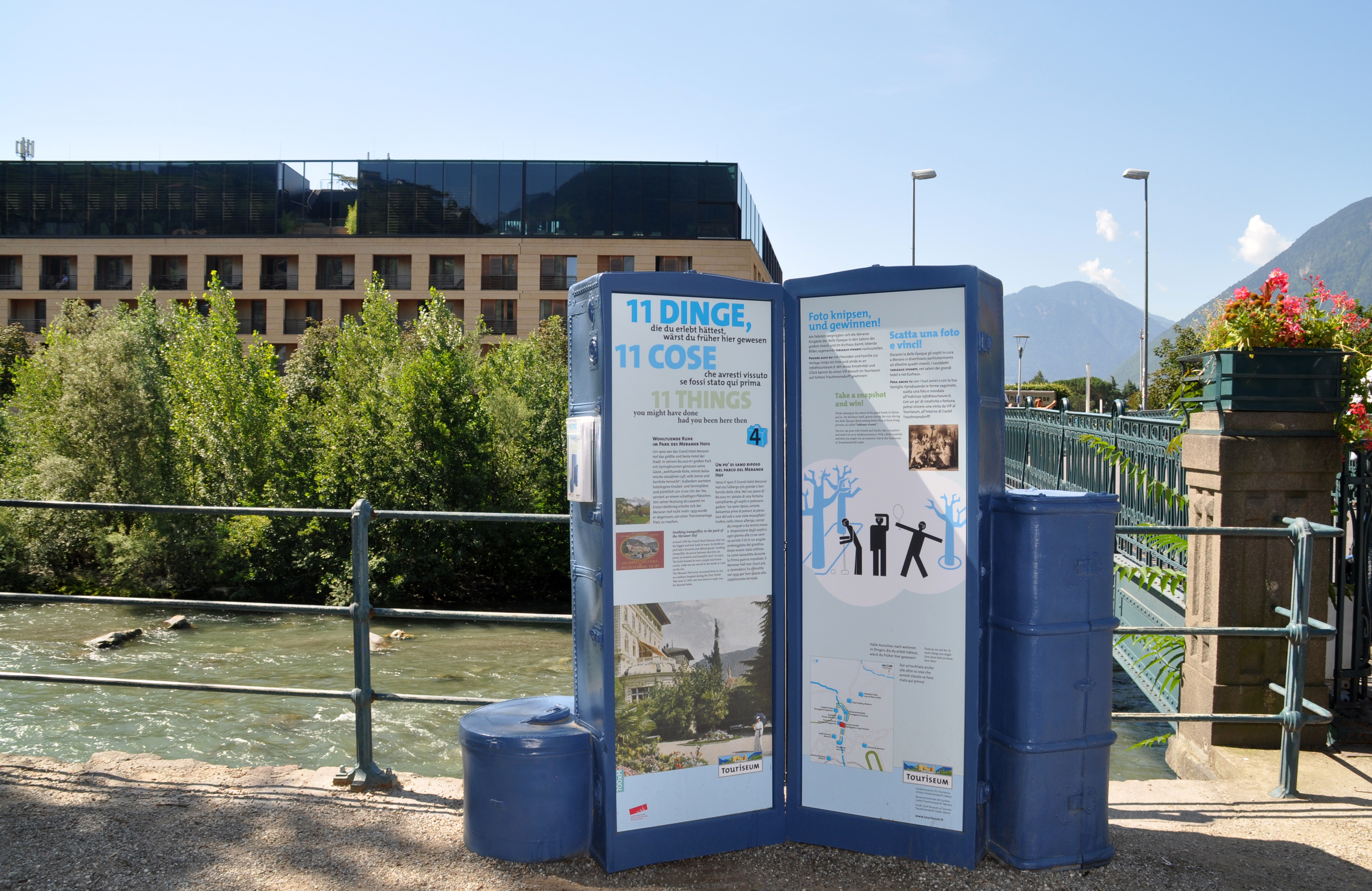 Ausschau nach den blauen Touriseumskoffern halten und Meran mit den Augen früherer Kurgäste entdecken!