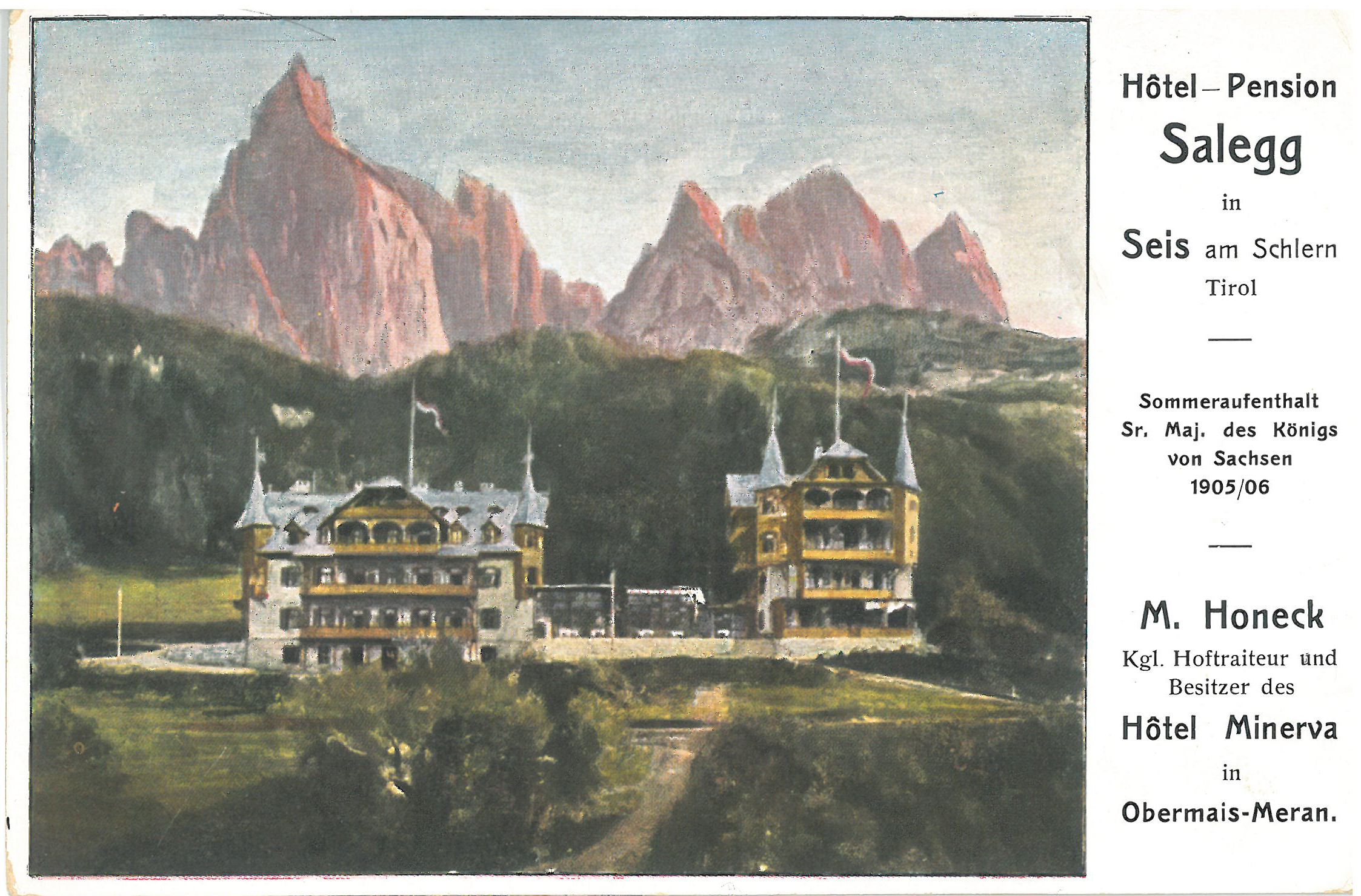 - Juli-September 1907: Ausbildung bei Michael und Magdalena Honeck im Hotel Salegg in Seis am Schlern