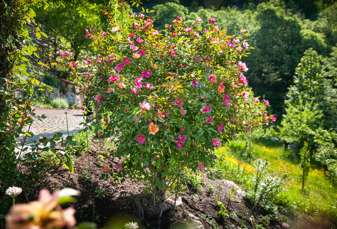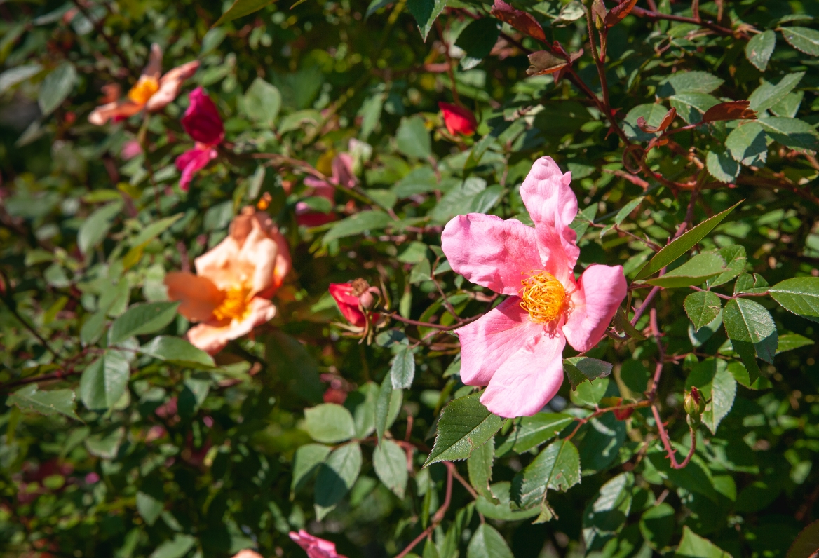 Der Rosenschnitt ist eine Wissenschaft für sich und je nach Sorte sehr unterschiedlich. Bei den meisten Rosen sollten die Triebe mit verwelkten Blüten auf ca. zwei bis drei Augen zurückgenommen werden. Nicht aber die Wildrosen. Sie blühen nur einmal und bilden dann die Hagebutten aus, die sich im Herbst rötlich färben. Zusätzlich sollte im Frühling ein Rückschnitt erfolgen, wobei man auch einige ältere Triebe entfernt, um neue zu fördern. Je nach Wuchs der Pflanze muss man den genauen Schnitt vor Ort bestimmen.
