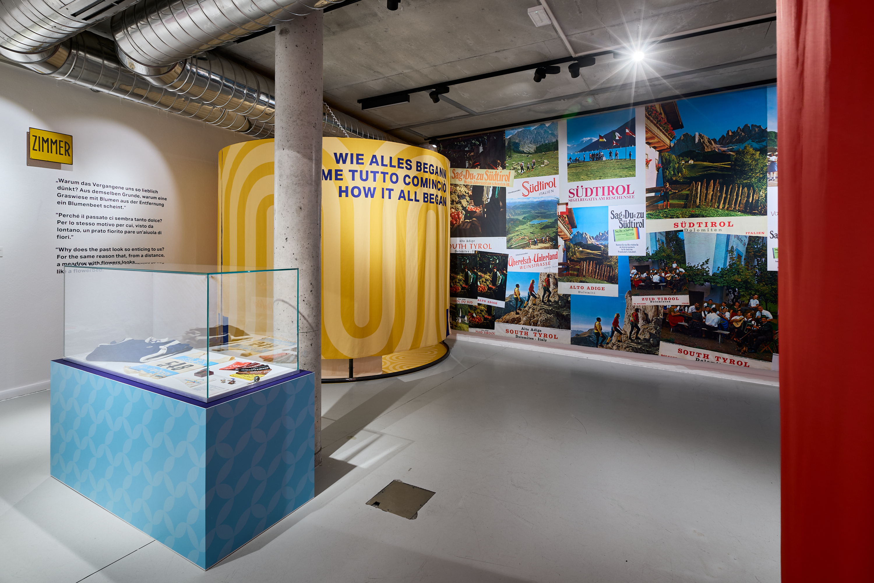 La nuova mostra speciale del Touriseum invita i visitatori a rivivere questo entusiasmante periodo di cambiamento attraverso i ricordi dei testimoni contemporanei. In sei isole tematiche, essi raccontano lo scontro tra mondi opposti: Industria contro turismo, povertà contro modernità, chiesa contro bikini - - e le esigenze degli ospiti, spesso in contrasto con quelle dei bambini. I racconti offrono una visione delle decisioni che hanno portato alla promozione del turismo nelle aree rurali, dei primi incontri con gli ospiti, che hanno aperto un nuovo ruolo alle donne in particolare come padrone di casa, e delle relazioni amichevoli con le persone provenienti dalle grandi città, che hanno offerto alle famiglie contadine una “finestra sul mondo”. Allo stesso tempo, si parla anche delle sfide del boom turistico: la perdita di privacy, l'influenza di nuovi stili di vita, la rapida attività edilizia e lo sfruttamento delle condizioni di lavoro.