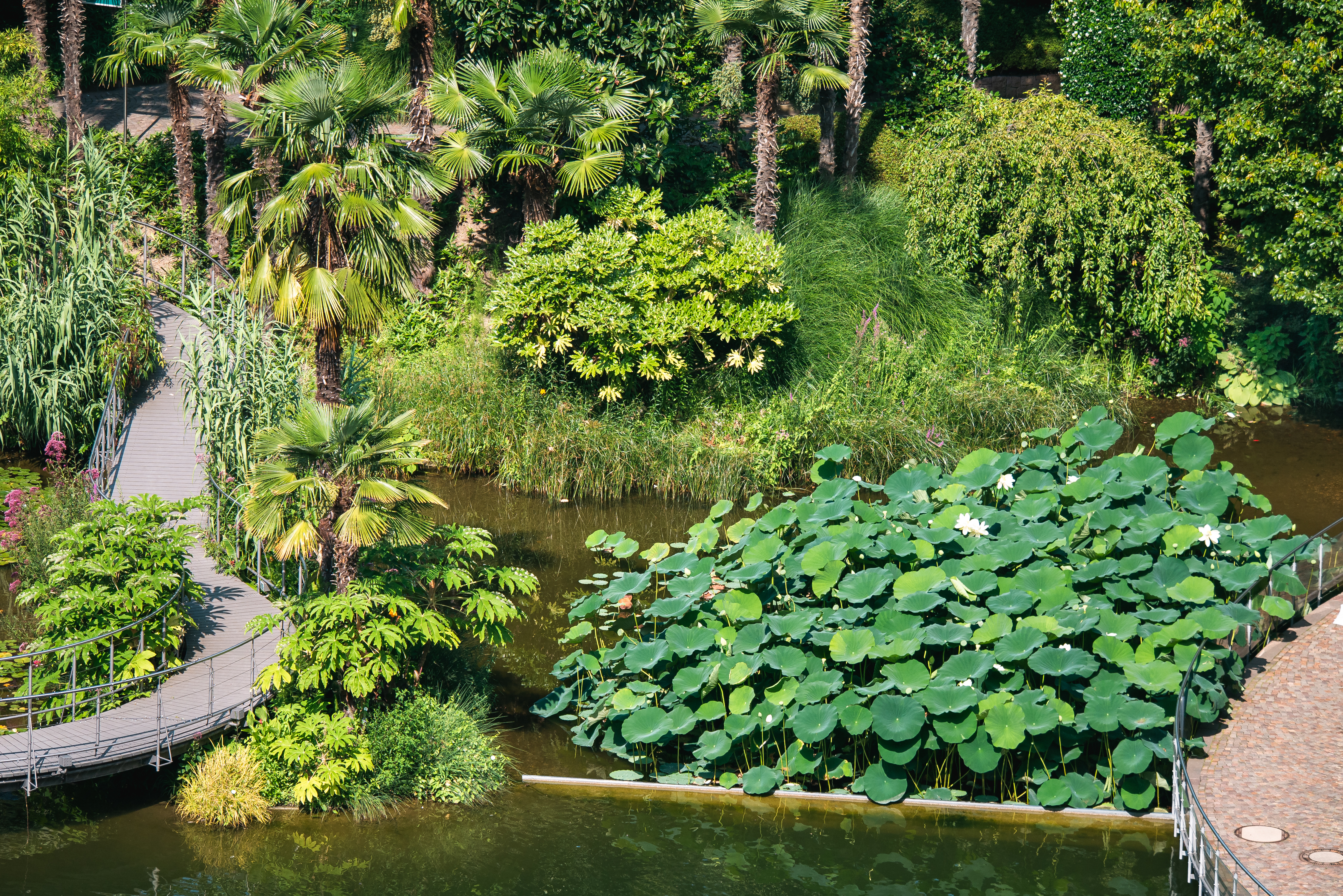 Il fiore di loto predilige esposizioni calde e soleggiate e una profondità massima dell'acqua di 2,5 metri. Nelle aree climatiche caratterizzate da inverni rigidi, rimane in riposo vegetativo e sopravvive grazie al rizoma ancorato nel terreno del fondale. Anche a Trauttmansdorff il fiore di loto sverna in un laghetto non riscaldato e la cui superficie talvolta ghiaccia. Resiste ai freddi inverni anche in molte località più a settentrione; tuttavia, raramente giunge poi a fioritura per via del clima troppo fresco e variabile. È importante effettuare la messa a dimora in primavera (dagli inizi di aprile ai primi di giugno), poiché i rizomi del fiore di loto sono molto sensibili al gelo. Si tratta di piante che consumano molto e necessitano quindi di essere nutrite con apposite pastiglie fertilizzanti per piante acquatiche nel corso della fase vegetativa. Il fertilizzante va inserito nel terreno attorno all'apparato radicale della pianta, alla profondità di un dito.