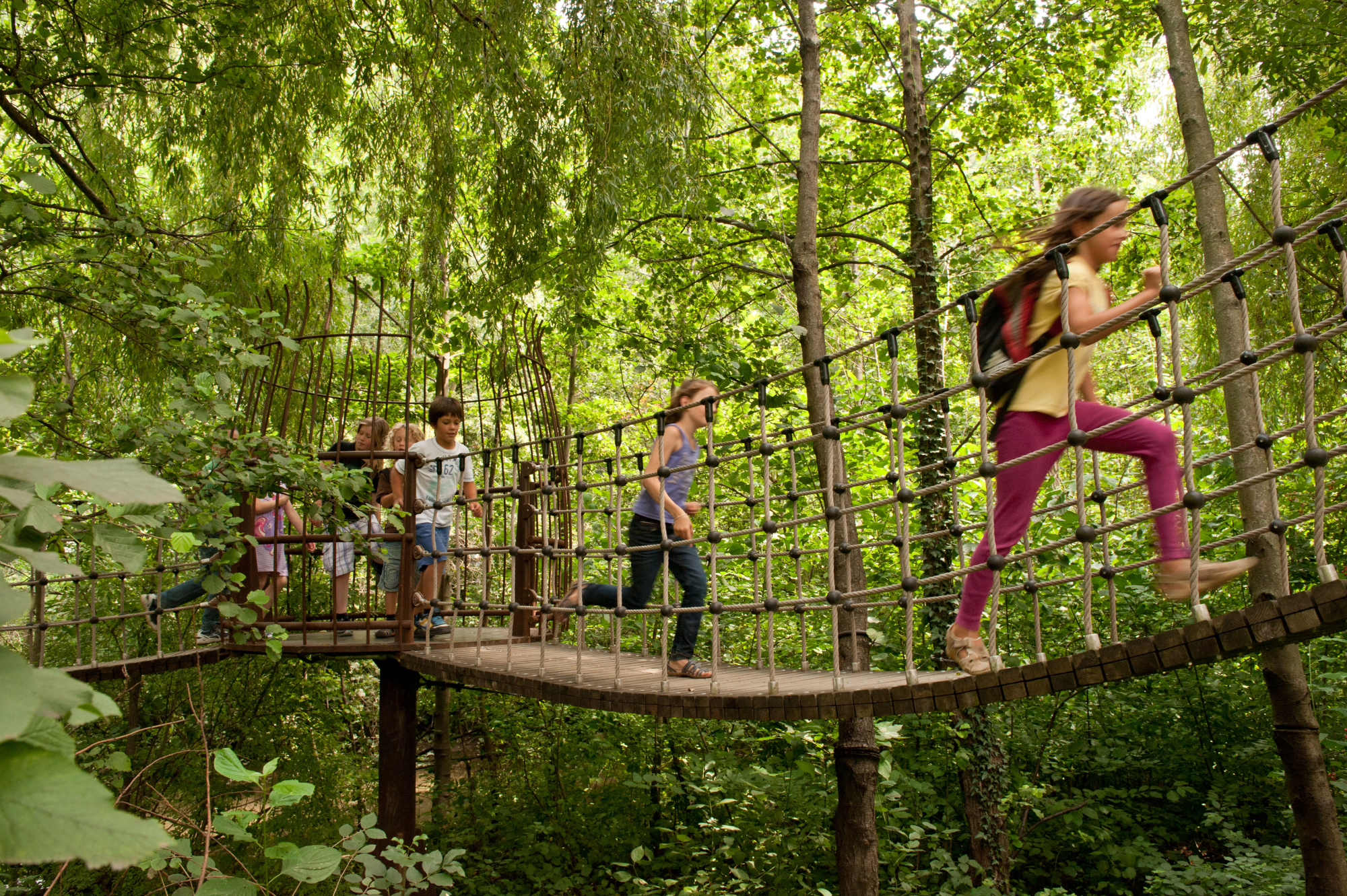 Un ponte sospeso, un tunnel sotterraneo per scoprire il misterioso mondo vegetale sotto il suolo, una grotta con uno spettacolo di tuoni e fulmini e tanti simpatici animali vi aspettano ai Giardini di Castel Trauttmansdorff!