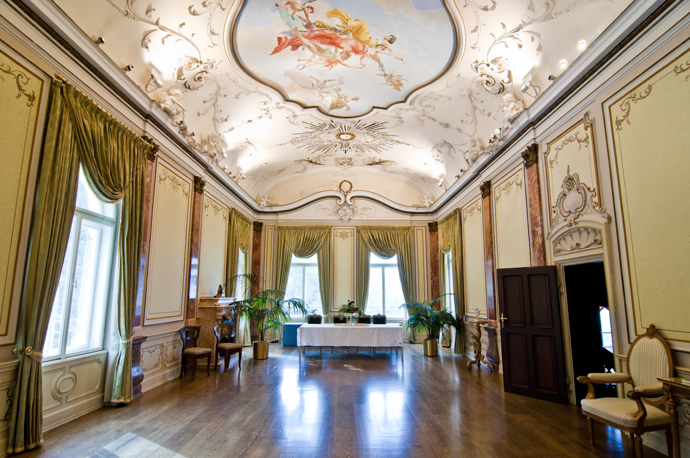 Vom mittelalterlichen Kern mit Krypta bis zum Neorokokosaal: Ein Spaziergang durch die historischen Räume von Schloss Trauttmansdorff lohnt sich!